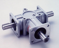 [構(gòu)造] 采用特殊鋼經(jīng)熱處理后拋光制成的弧齒錐齒輪,確保精度。 軸材料采用碳素鋼施以熱處理加工,提高抗彎強度。 使用圓錐滾子軸承,能承受各軸的徑向負荷及軸向負荷。 A軸為單側(cè)軸承支持,B軸為兩端軸承支持 (在附有軸承座的情況下B軸為單側(cè)支持)。 齒輪箱體由高強度的鑄鐵制成。 采用油浴潤滑方式,齒輪箱的底部作為油槽,齒輪的一部分沉浸在潤滑油中回轉(zhuǎn),濺起的油沫充滿齒輪箱,以此潤滑齒輪及軸承。 回轉(zhuǎn)部分采用油封,固定部分采用O形圈或液封等,以防外漏。